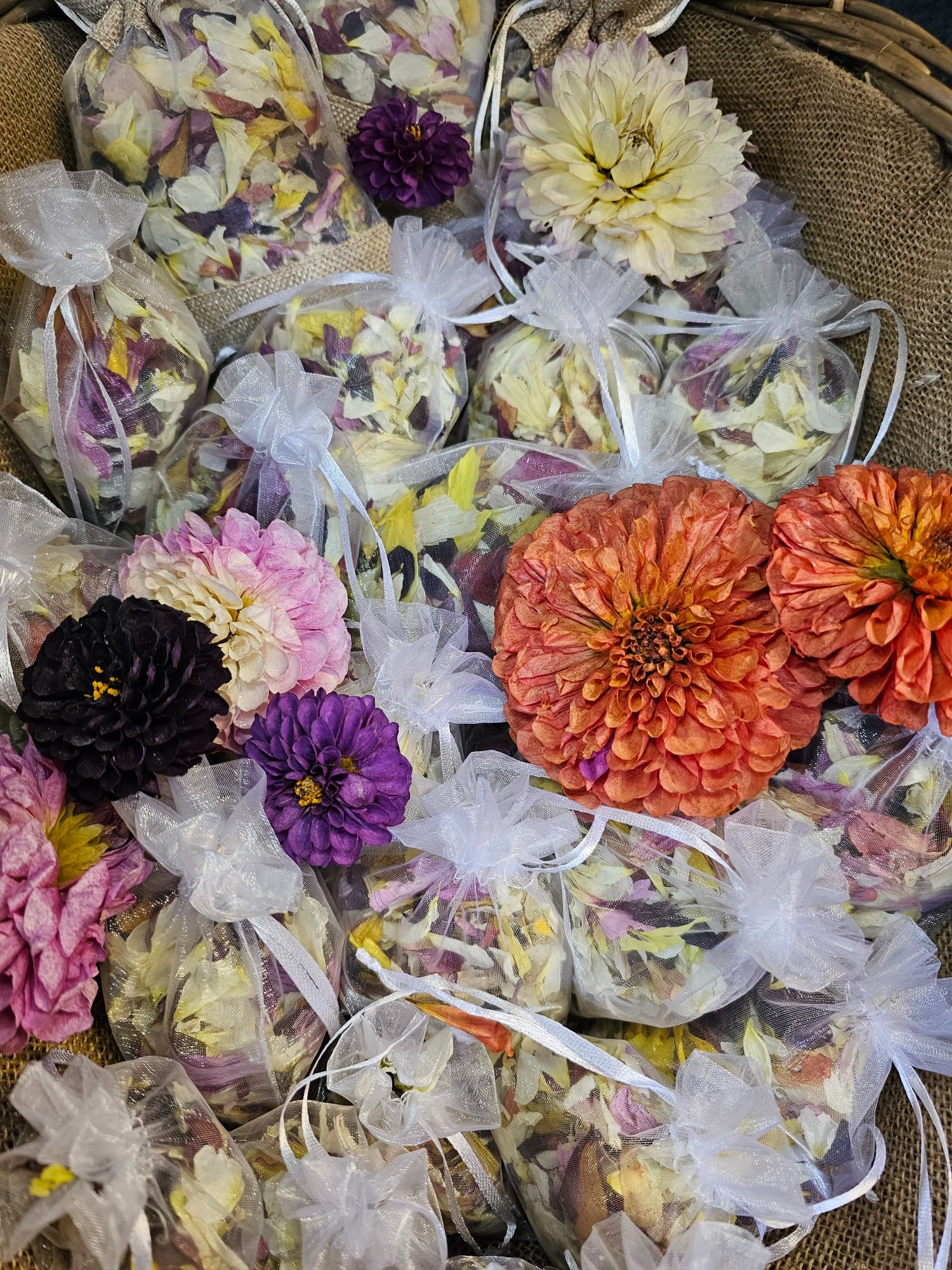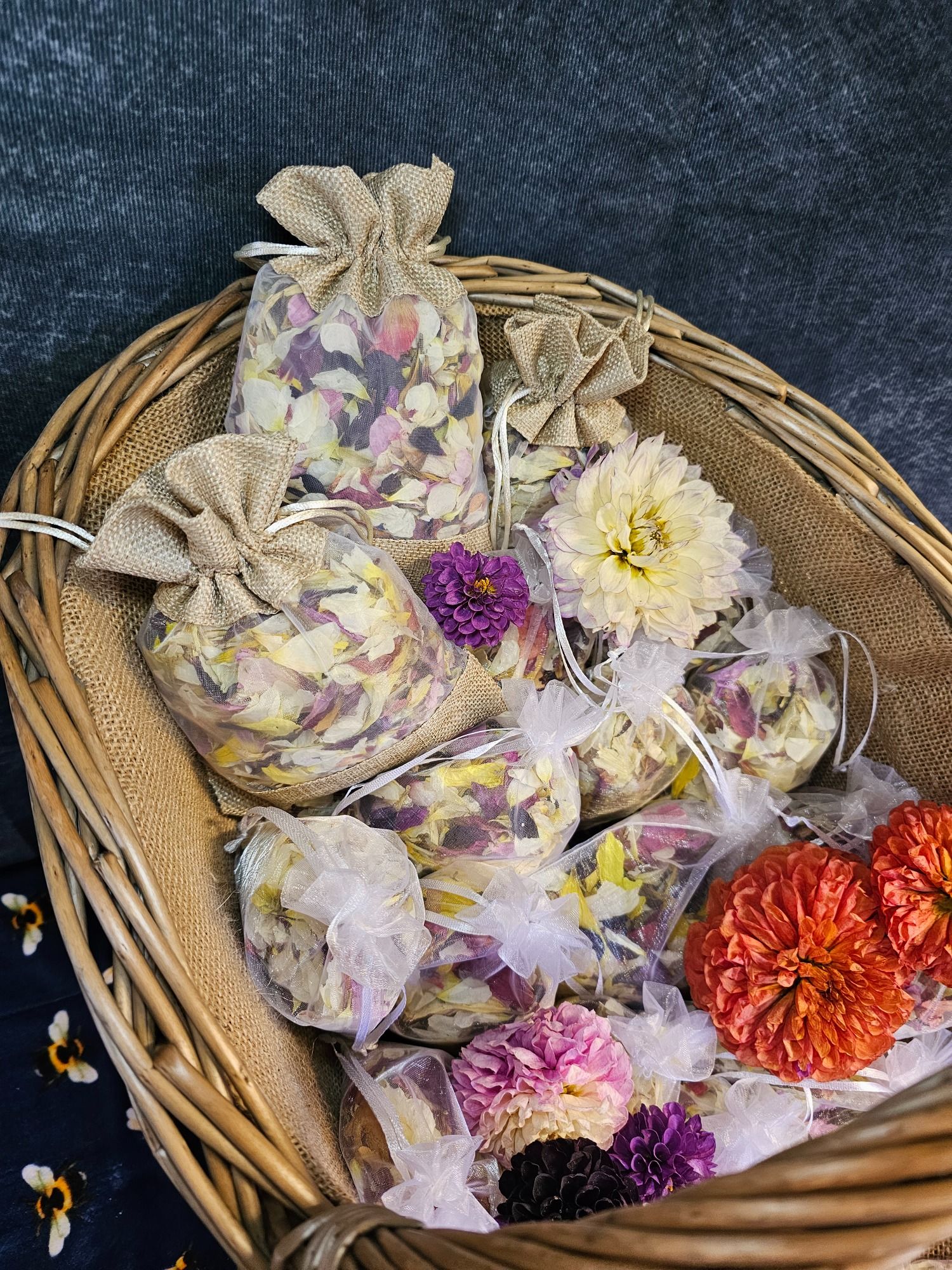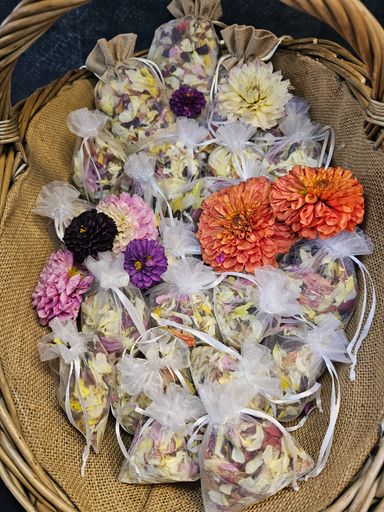 All made using home-grown flowers, particularly dahlias, from Bramble & Bombus Flower Farm.
